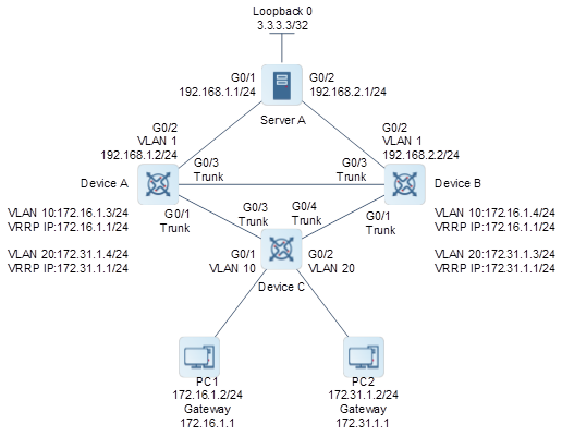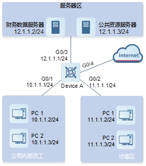 l Device上G0/1和G0/2的入方向和出方向都要应用ACL,所以Device需要配置4条ACL,分别匹配从PC到Gateway和从Gateway到PC的ICMP报文。