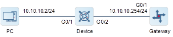 Device设备和Gateway设备互联接口G0/2的入方向收到10个报文(Device设备ACL 103)。