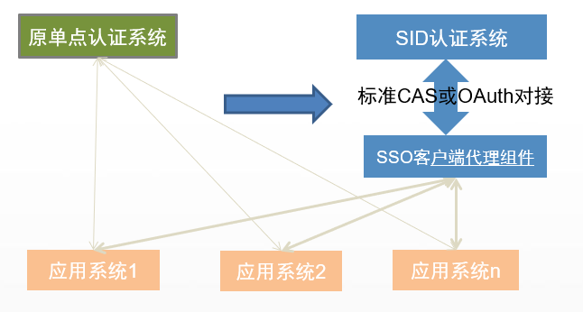 通过SID-SSO客户端代理方案,该组件业务功能为代理应用系统进行SID认证和入口授权,实现多种认证方式的单点对接,以及不同人群拥有不同的应用访问权限,应用系统延续以前的单点对接方式进行单点认证,无感知对接方案,实现新老平台无缝切换、平滑过渡,使客户无感知体验!