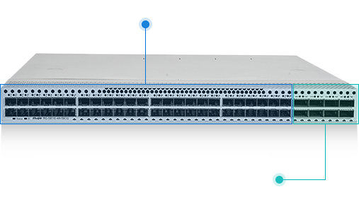 • 48个25G光口,8个100G光口可用作上联,实现大流量数据无阻塞传输,并提供强大的缓存能力