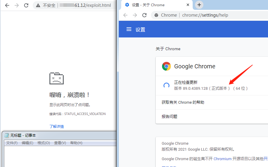 1.在Chrome 89.0.4389.128正式版本中漏洞复现: