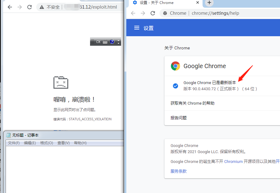 2.在Chrome 90.0.4430.72正式版本中漏洞复现: