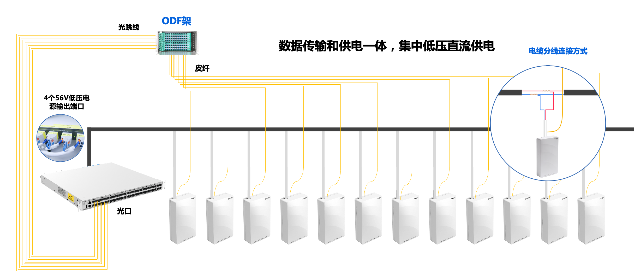 2022年,以太全光无线3.0解决方案即将上市,它采用光电混合缆方式,充分考虑到AP利旧的情况,还可以通过远程方式控制上下电,更省时省力。覆盖场景也从宿舍扩大到办公室、会议室、户外等校园网全场景。