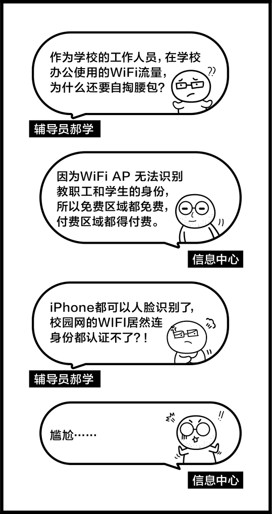 每月领着微薄的工资,却意外发现,自己在学校工作时用的Wi-Fi 居然还要另外掏钱!