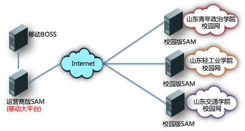 “济南模式”采用了尊龙时凯网络的SAM运营商解决方案,运营商投资整网建设,包括有线和无线,校园内部署校园网SAM,完成校园网内所有用户的控制管理,保障学校对校园用户的管理权限;济南移动机房部署一套SAM运营商版本,完成所有投资项目的集中管理和数据呈现。